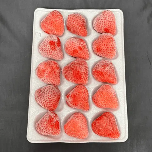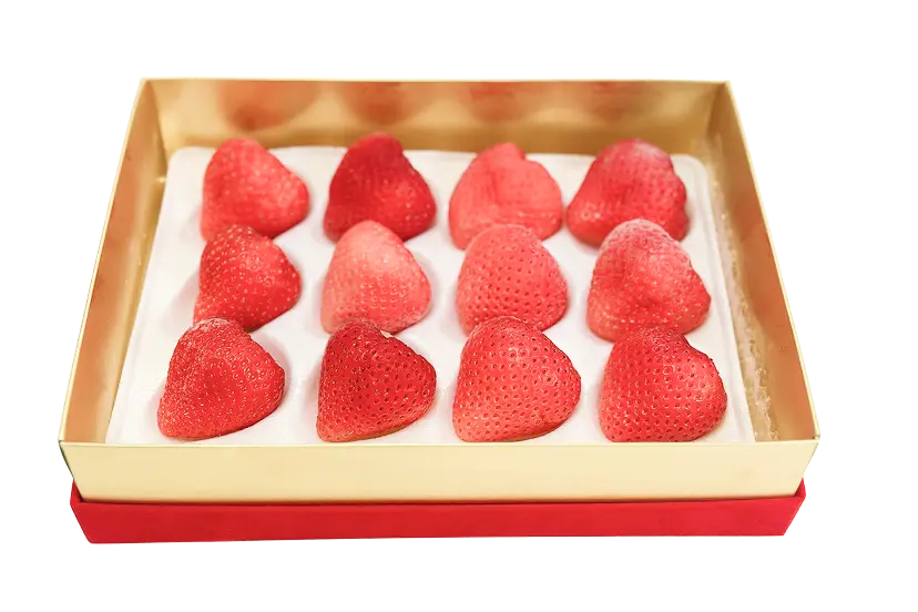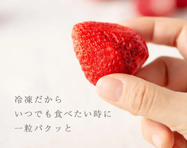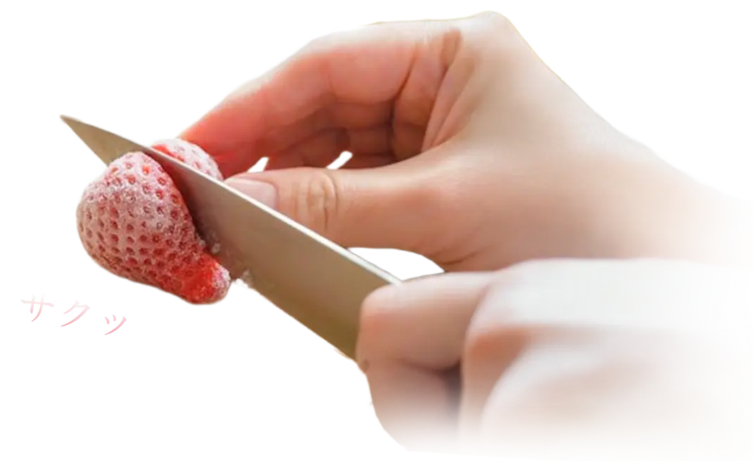 苺の一番美味しいタイミングに瞬間冷凍でその味を閉じ込めました。 お試し注文はこちらから 最高に美味しい状態の日本のいちご年間を通していつでも食べられるとしたら? 武下農園がこだわり抜いた「完熟のあまおう」はなかなか市場に出回らない希少性の高いいちご その甘くて香り豊かな“完熟いちご”を、−65℃瞬間冷凍でギュッと閉じ込めました。 冷凍庫から出して凍った状態でもすぐにカットしたり食べることができるこれまでにない新しいカタチの冷凍いちごです。 このような方にご検討いただきたい、新しい冷凍いちごです。 日本の食材やフルーツを輸入しているバイヤー 次の売れ筋となる日本食材を探している商社・食品輸出営業マン 海外で日本食材を扱う飲食事業者・シェフ 従来の日本のいちごにある課題 そのうえ 「完熟」は出荷に耐えられるギリギリの状態で収穫 完熟いちごの場合はより一層、タイミングが重要です。出荷に耐えられる硬さでは収穫せず、すぐに食べなきゃいけない熟熟の状態。出荷に耐えられるギリギリです。 出荷の半分を冷凍いちごなどの加工品に活用 あえて全てを出荷にまわさず、収穫の半分は冷凍いちごや加工品として活用するなど、完熟あまおうの美味しさをさまざまな形でご提案してきました。 しかし、その冷凍いちごも 解凍すると水っぽくなる 食感が失われる デザートの脇役で終わる といった課題があり、どうすれば完熟あまおうの美味しさそのままに、お客様へお届けできるのか日々頭を悩ませていました。 −65℃の瞬間冷凍で 一番おいしい瞬間を閉じ込める 課題を解決するために武下農園では、いちごが一番美味しくなる「完熟の瞬間」で収穫したあまおうを、収穫後最短で−65℃の瞬間冷凍する技術を生み出しました。この工程によって、完熟あまおうの甘み、香り、食感をそのまま閉じ込めることが可能に。 冷凍庫から出して すぐにカットして食べられる 解凍前のいちごは硬くて包丁で切るのも大変でした。そのため解凍時間を考えながら調理を進めていく必要がありました。この瞬間冷凍あまおうは冷凍庫から出したそのまま食べることができるほど、サクッとした食感とカットのしやすさが特徴です。 実際に試食されたみなさんからは… といった驚きの声とともに、商品化を待ち望む声も多くいただいています。 そしてこの度、革新的な瞬間冷凍完熟いちごをお届けする準備が整いました。 これまでのいちごとはちがい、冷凍によって年間を通した安定出荷が可能になったため、海外輸入やレシピ開発など幅広い用途でご検討いただけます。 完熟の状態で-65°瞬間冷凍 通常は流通に耐えられるように早めに収穫して輸送中に追熟させるのが普通ですが、完熟になった苺が一番美味しい状態で瞬間冷凍しているため苺本来の香りや味を味わえることができます。 冷凍庫から出してすぐガブリと食べることができる 従来のように固くて食べられず解凍を待っていて水っぽくなってしまうことも、冷凍したことで甘さが弱まることもありません。冷凍から出して凍った状態ですぐに食べる・カットすることができるため、解凍工程を必要とせず、仕込み・提供・加工の時間短縮が可能です。またドリップが圧倒的に少ないため、あまおうの旨みを逃しません。 冷凍されていることで年間を通して味わうことができる 季節問わず安定した提供が可能となるため、ジェラートやドリンクなどの夏レシピの開発などにもご提案いただけます。これまで不可能だった、真夏の暑い時期に冷たくて美味しい苺を食べることができるのも魅力。海外への出荷も可能なため、日本のおいしいいちごをさまざな国や地域にお届けすることができます。 お客様のお声 お試しいただいた方のご感想を載せています。 フローズンアイスは、あんまり食べたことなかったのですが、大好きになりました。 そのままでも美味しい アレンジも豊富で美味しく頂きました そのままでも美味しい アレンジも豊富で美味しく頂きました 全てにおいて凄く良いです 皆さんもお試ししめみては 全てにおいて凄く良いです 皆さんもお試ししめみては そのままでも美味しい アレンジも豊富で美味しく頂きました そのままでも美味しい アレンジも豊富で美味しく頂きました このようなシーンでご利用いただけます 完熟瞬間冷凍あまおうの利用シーンの一例です。 季節問わず安定的に供給できる点と「冷凍」を生かし、さまざまな用途でお使いいただけます。 ※イメージ・提案例 高級レストラン・ホテルのデザート提供 カフェ・パティスリーのメニュー開発 ドリンク・冷菓(ジェラート・シャーベット) 商談・展示会でのデモンストレーション 業務用原料商品開発用途 武下農園について 武下農園は、福岡県・大川市。 筑後川の豊かな水と、自然に恵まれた土地で、いちご本来の美味しさを追求してきました。 いちごが最も美味しくなる、朝の早い時間に収穫 天候や気候の変化に細心の注意を払